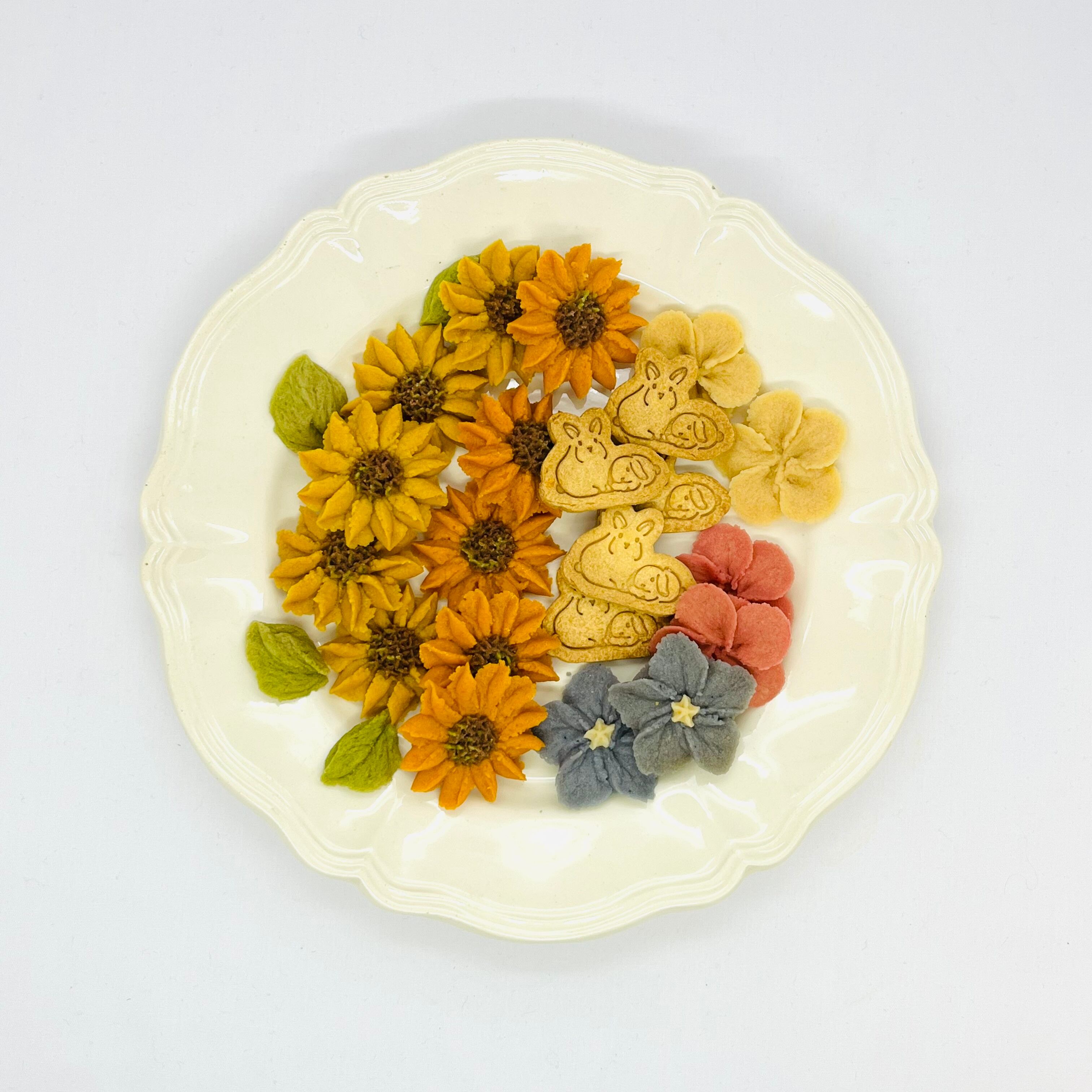 ひとつひとつ手作りで焼き上げ、野菜やフルーツで色付けされたお花のクッキーは、あんこをベースに作られていて無添加&グルテンフリー。サクサク食感に、思わず笑顔がこぼれます。