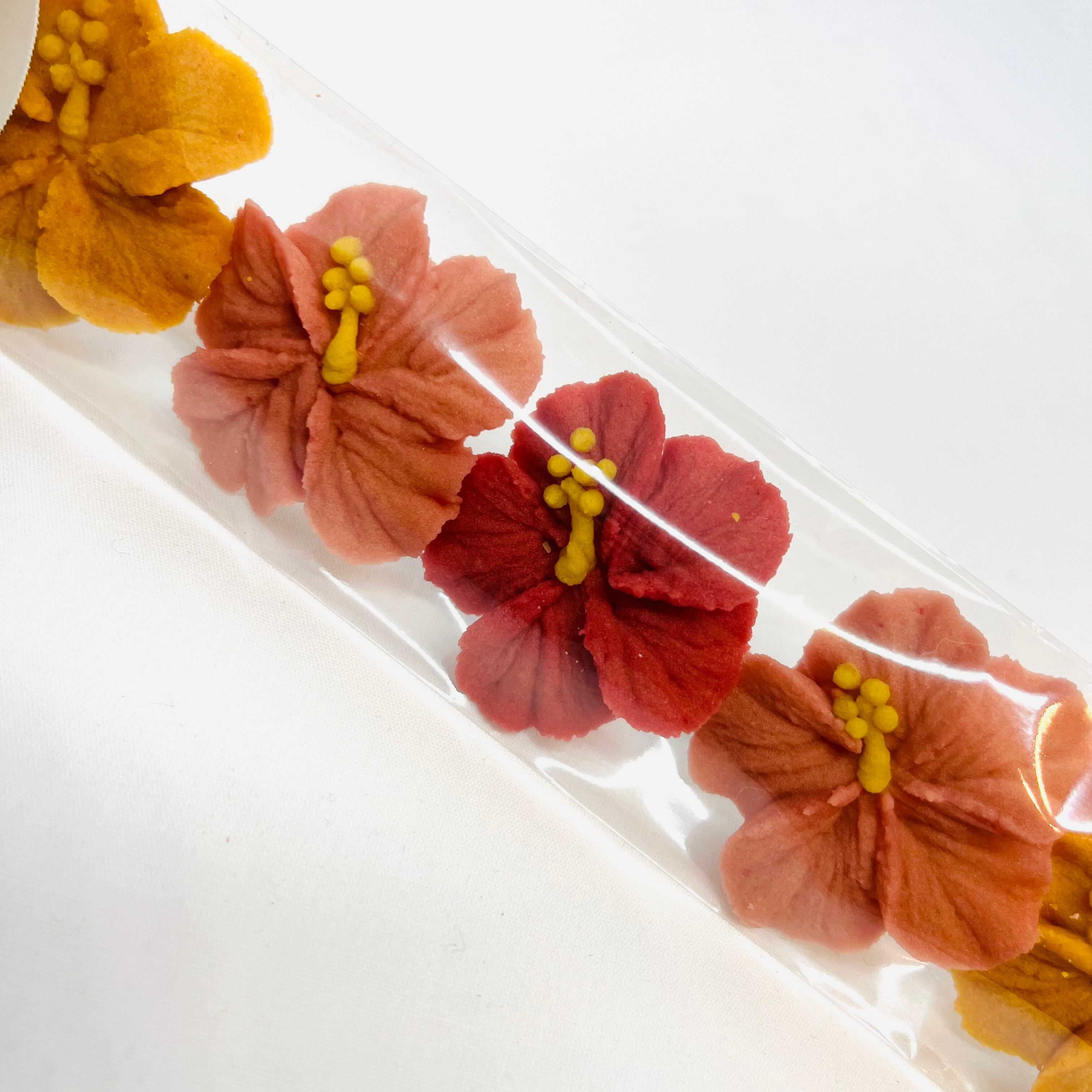 可愛らしい一口サイズのハイビスカスのあんこフラワークッキーが、夏を感じる鮮やかな配色で並びました!